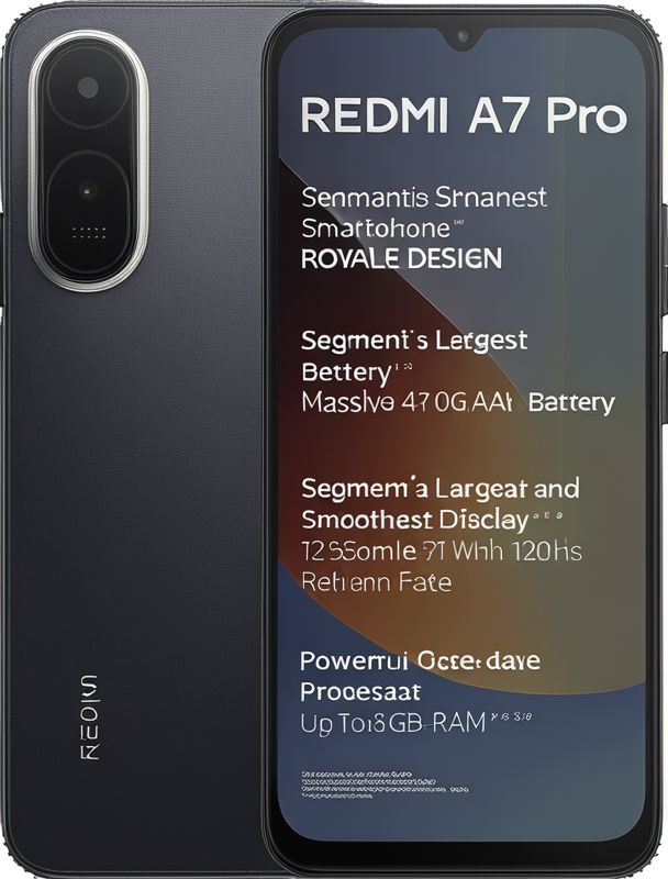 Redmi A7 Pro 4G mobile was launched on 21st April 2026. The phone comes with a 120 Hz refresh rate 6.90-inch touchscreen display offering a resolution of 720x1600 pixels (HD+). Redmi A7 Pro 4G is powered by a 1.8GHz octa-core Unisoc T7250 processor. It comes with 4GB of RAM. The Redmi A7 Pro 4G runs Android 16 and is powered by a 6300mAh non-removable battery. The Redmi A7 Pro 4G supports 15W Fast Charging fast charging.